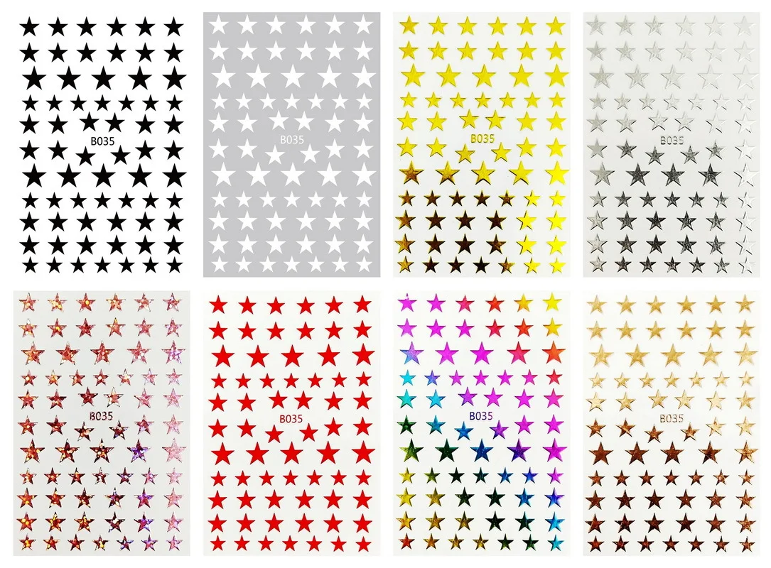 Nail 3D Stickers are waterproof, so you can wear them at the beach, for swimming, or anywhere else where your nails might come into contact with water. Each sheet measures 6.3*9.5cm and contains an assortment of star patterns in different colors, making it easy to create a unique look.