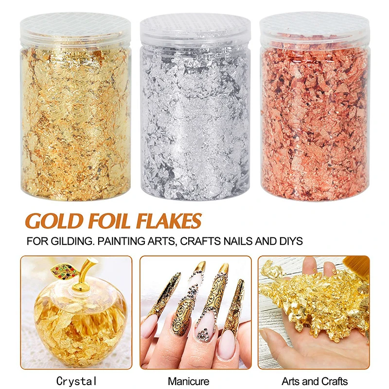 Our Gold Foil Flakes are a must-have for anyone looking to add a touch of luxury and sophistication to their gilding, painting arts, crafts, nails, and DIYs. With three types to choose from, you can create a variety of unique designs that will impress everyone who sees them.