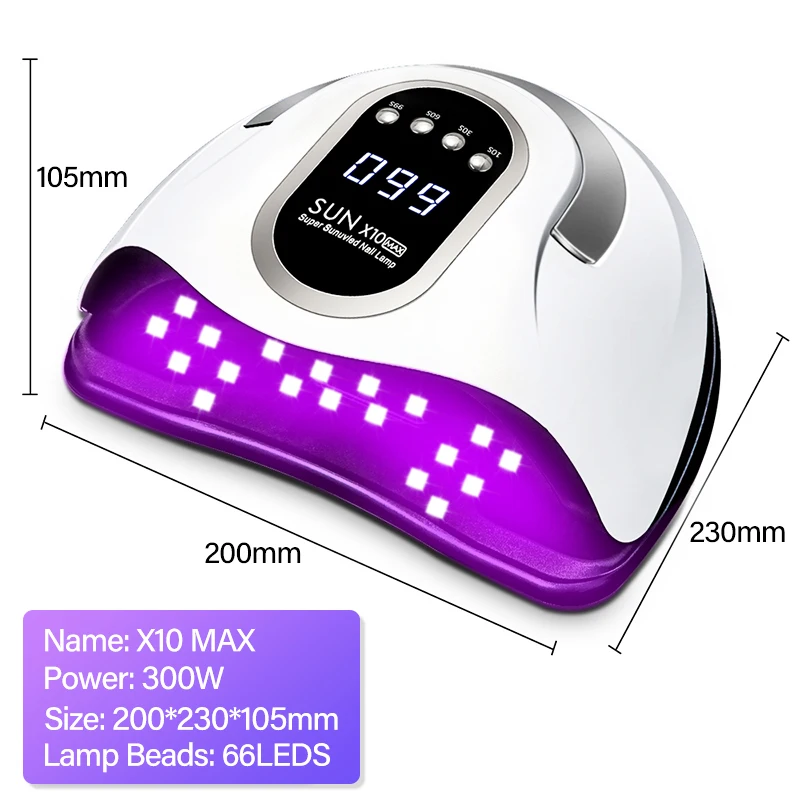 - 【300W Ultra-Fast Cure】Our upgraded 300W UV light cures gel nails 3X faster than other 120W salon dryers, shortening curing time and saving time.