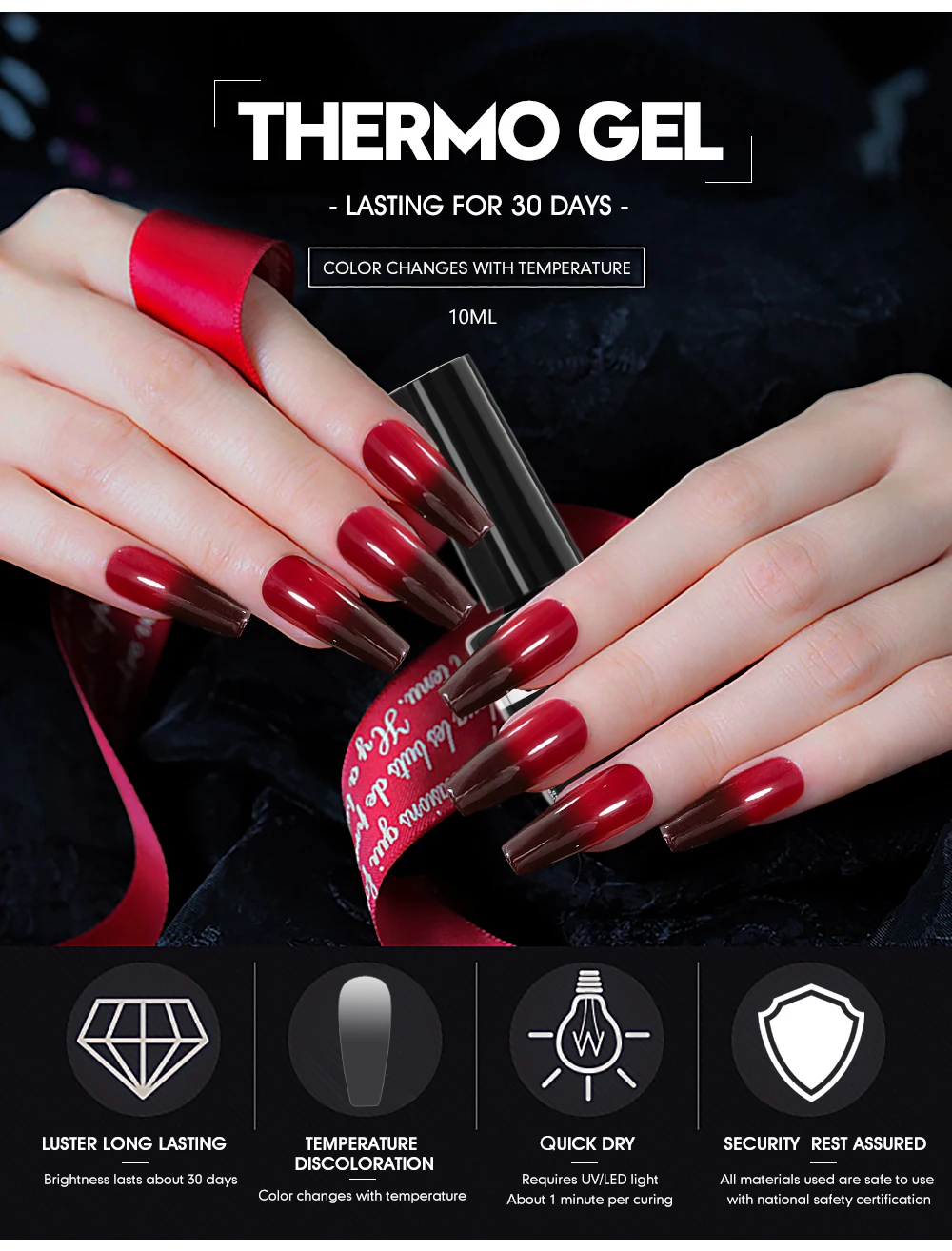 This innovative nail polish is perfect for anyone who wants to add a little something extra to their at-home manicure routine. Our thermal nail polish changes color with the temperature, creating a unique and eye-catching effect that will make your nails stand out from the crowd. Plus, the ombre effect adds an additional layer of style and sophistication. Not only is our nail polish stylish and unique, it is also made to last. Our semi-permanent formula will keep your nails looking great for up to two weeks without chipping or peeling. Plus, it is easy to apply with the help of a UV LED lamp, making it perfect for anyone who wants a professional-looking manicure without having to leave the house. With a 10ml, you’ll have everything you need to create a salon-quality manicure at home. Whether you’re looking to impress at a special event or just want to add a little extra flair to your everyday look, our nail polish is the perfect choice.